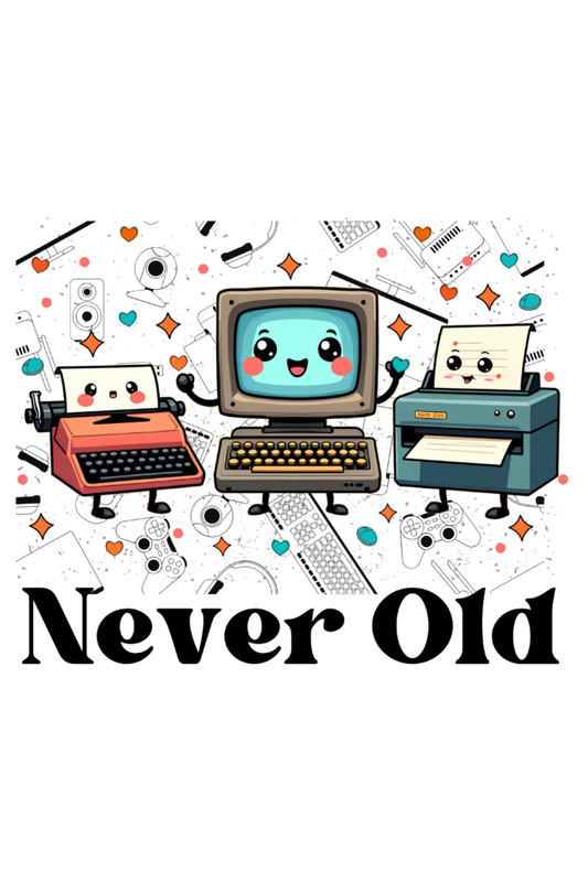 Never old - Feel Nostalgic with Cute Printer , Deskstop & Typewriter -ladies tee