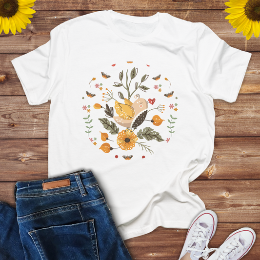 Boho Style Bird and butterfly print design -Ladies tee