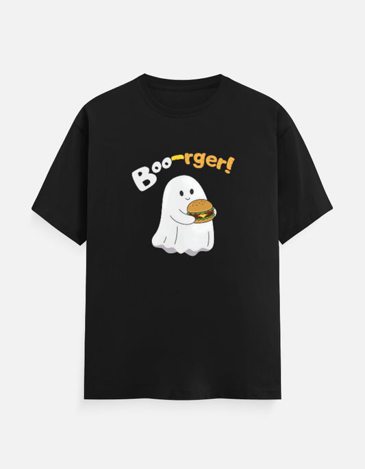 Boo-rger ! Cute Halloween Ghost eating Burger Mens Classic Crew T-Shirt