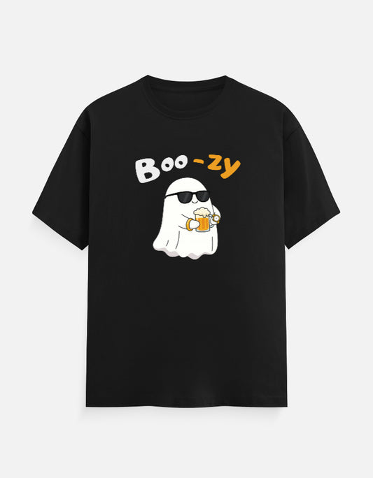 Boo-zy! Cute Halloween Ghost Drinking Mens Classic Crew T-Shirt