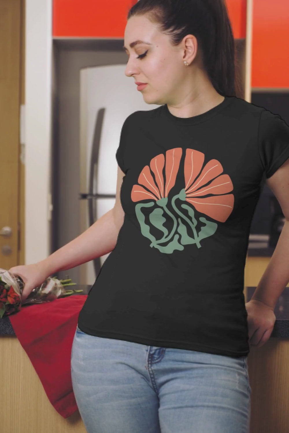 Boho Abstract Groovy Orange & Green Flower -Ladies tee