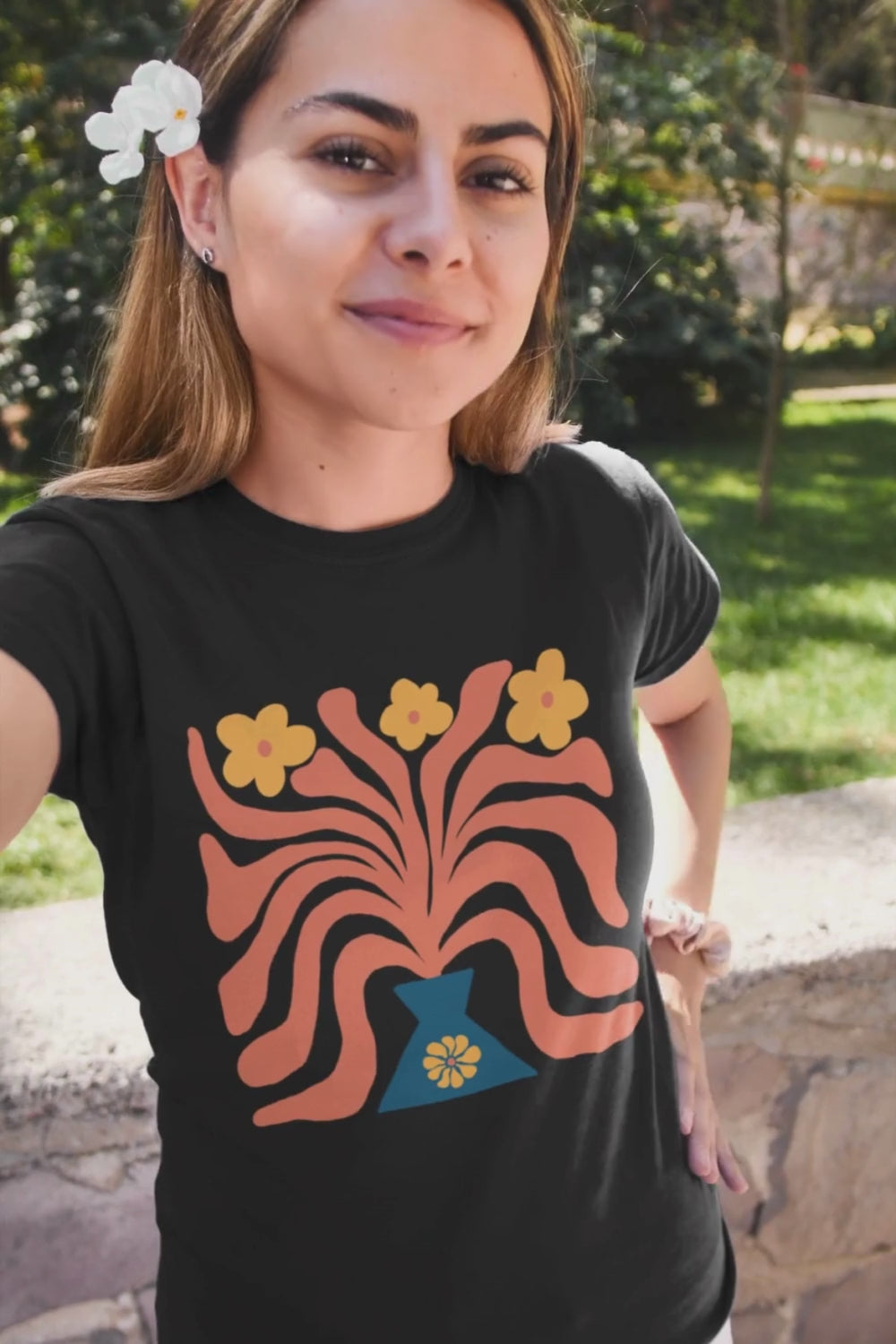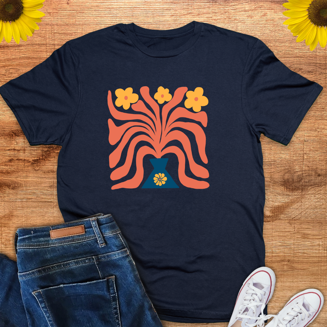 Start the New Year with elegance and charm! 🌸 Our Abstract Boho flower pot Tee with delicate green & Orange flowers is perfect for you who love timeless style and fresh beginnings. 🌿✨