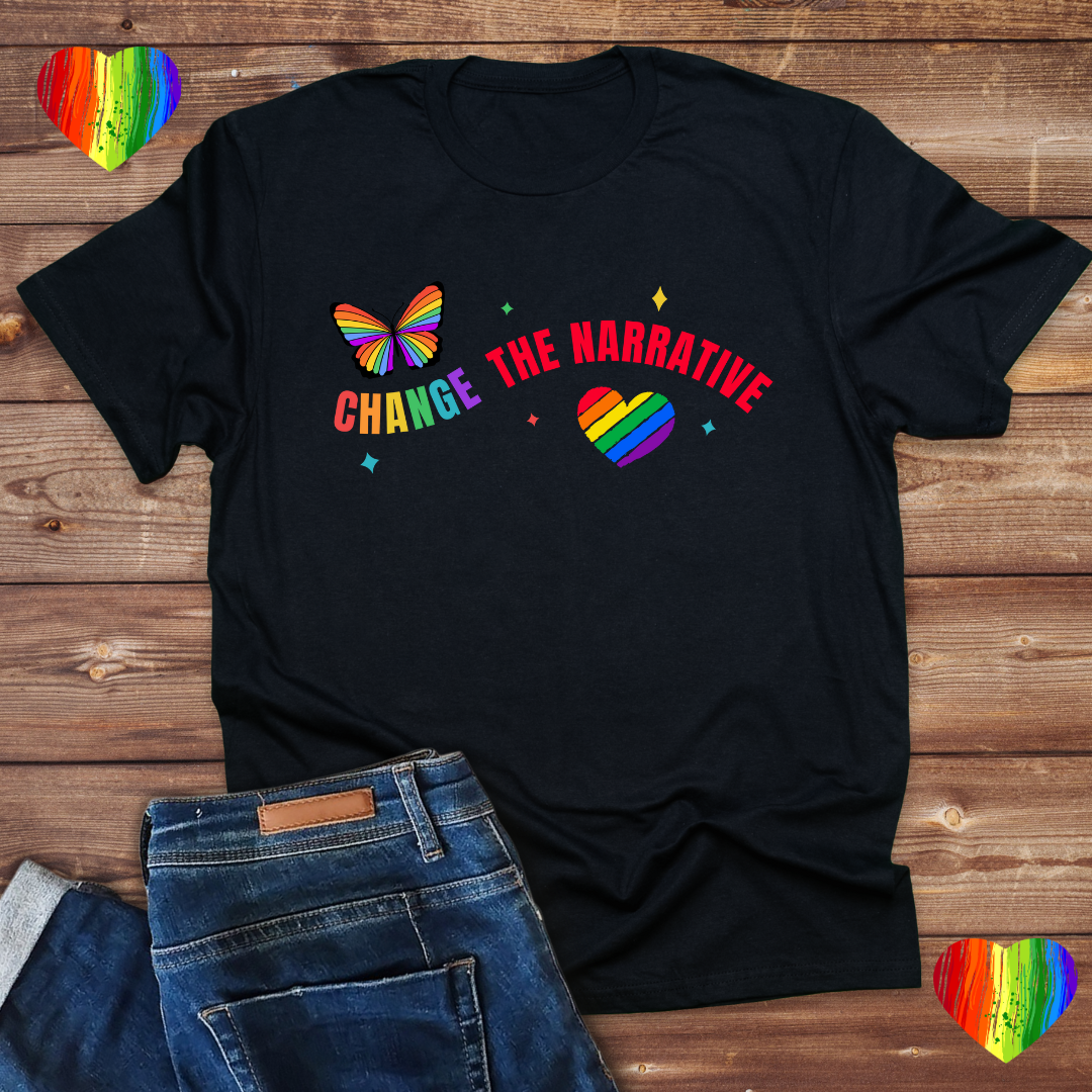 "Show your pride and support with this bold ‘CHANGE THE NARRATIVE ’ unisex crew tee – because equality never goes out of style."