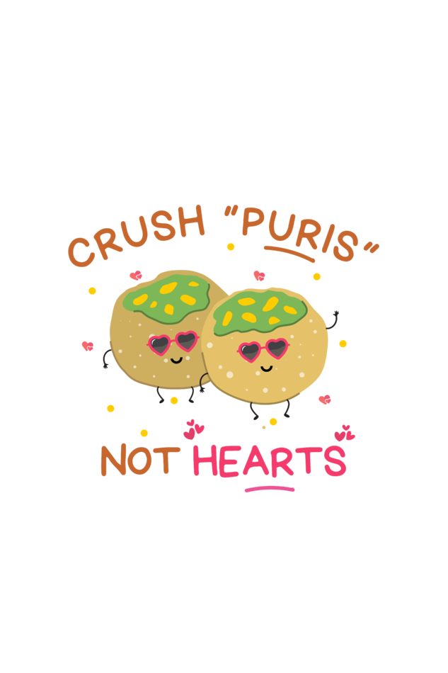 style. Carry your love for Indian street food and keep it playful – crush puris, not hearts! ❤️
