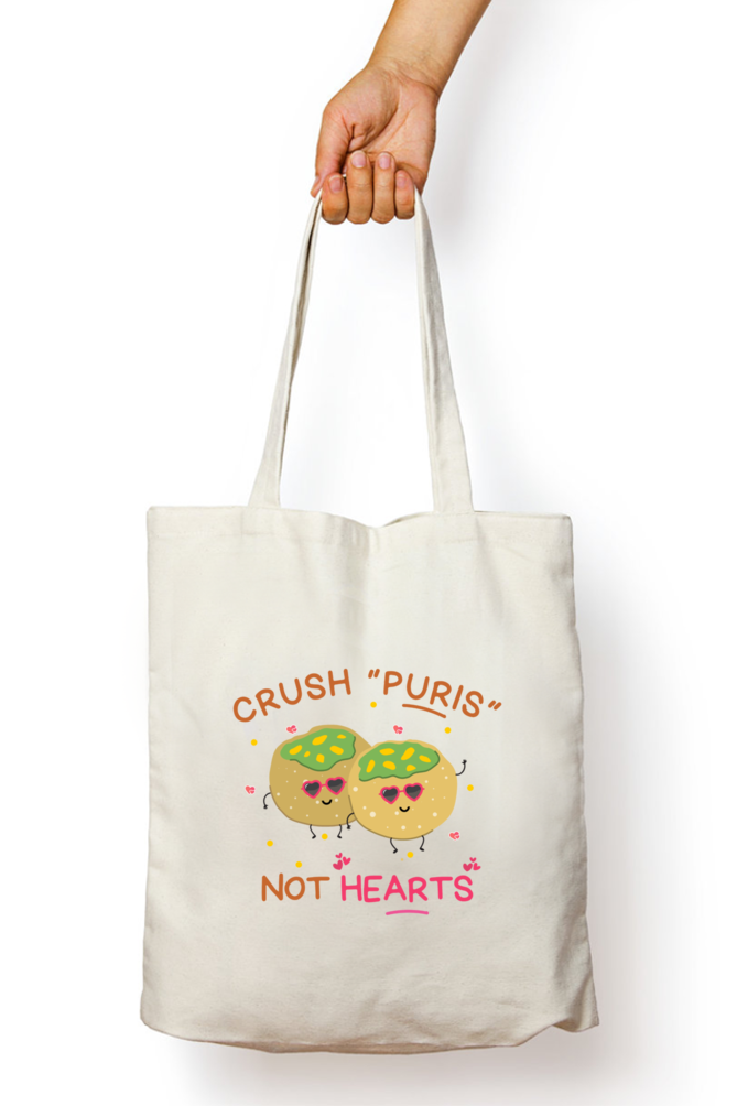 ake the love for Pani-Puri wherever you go with this playful tote bag! Featuring two puris rocking heart-shaped sunglasses, this