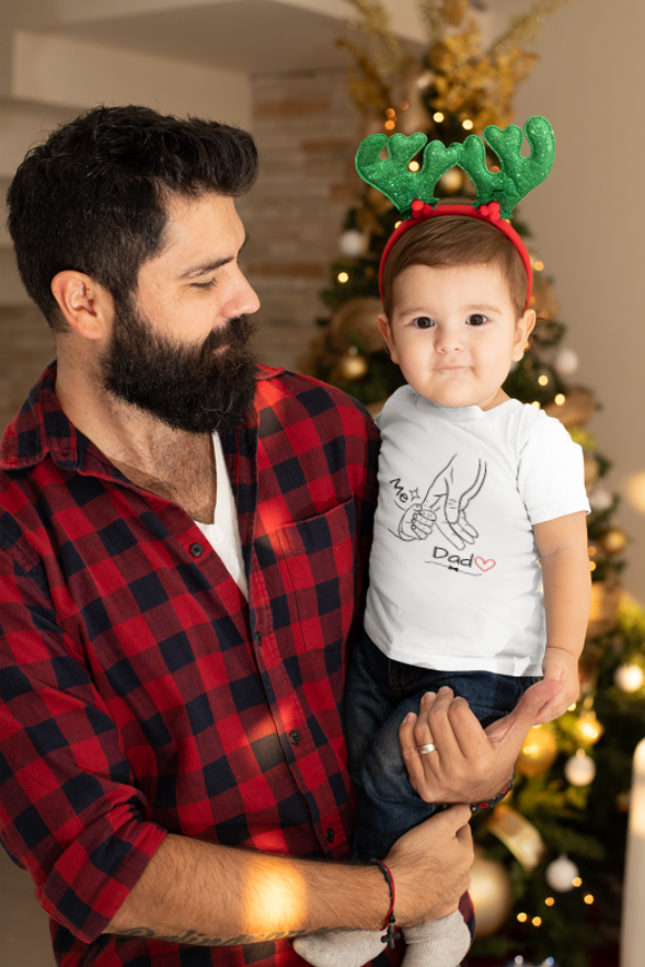 Celebrate the unbreakable bond between a father and child with this touching “Dad & Me” T-shirt. Featuring a minimalist line art of a small hand holding dad’s finger, this design captures pure love most simply.