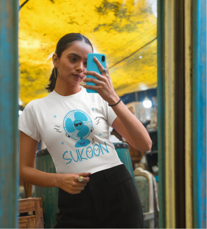 Let's bring a cool breeze of joy with this "Fan-tastic Sukoon" t-shirt design
