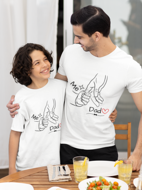 Celebrate the unbreakable bond between a father and child with this touching “Dad & Me” T-shirt. Featuring a minimalist line art of a small hand holding dad’s finger, this design captures pure love most simply.