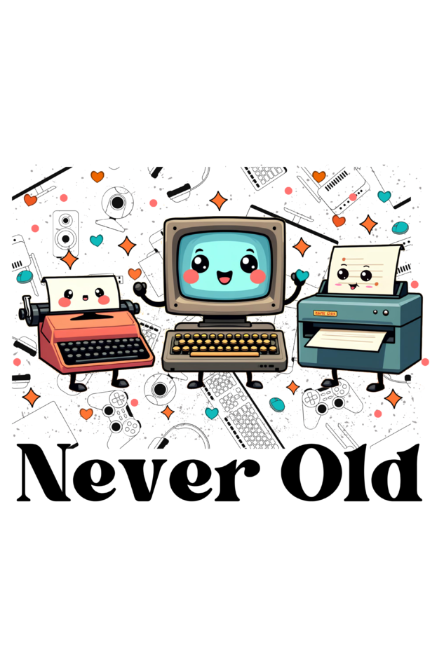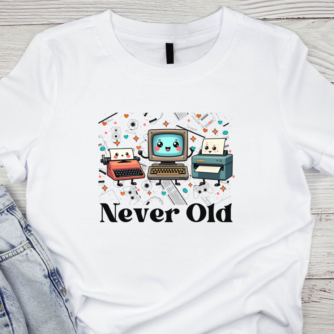 Never old - Feel Nostalgic with Cute Printer , Deskstop & Typewriter -ladies tee