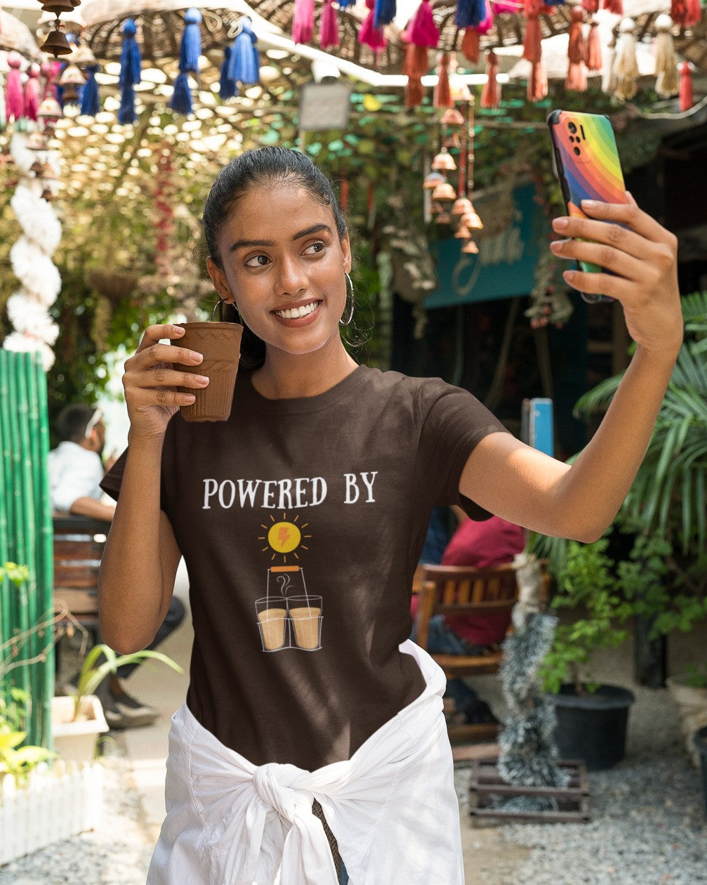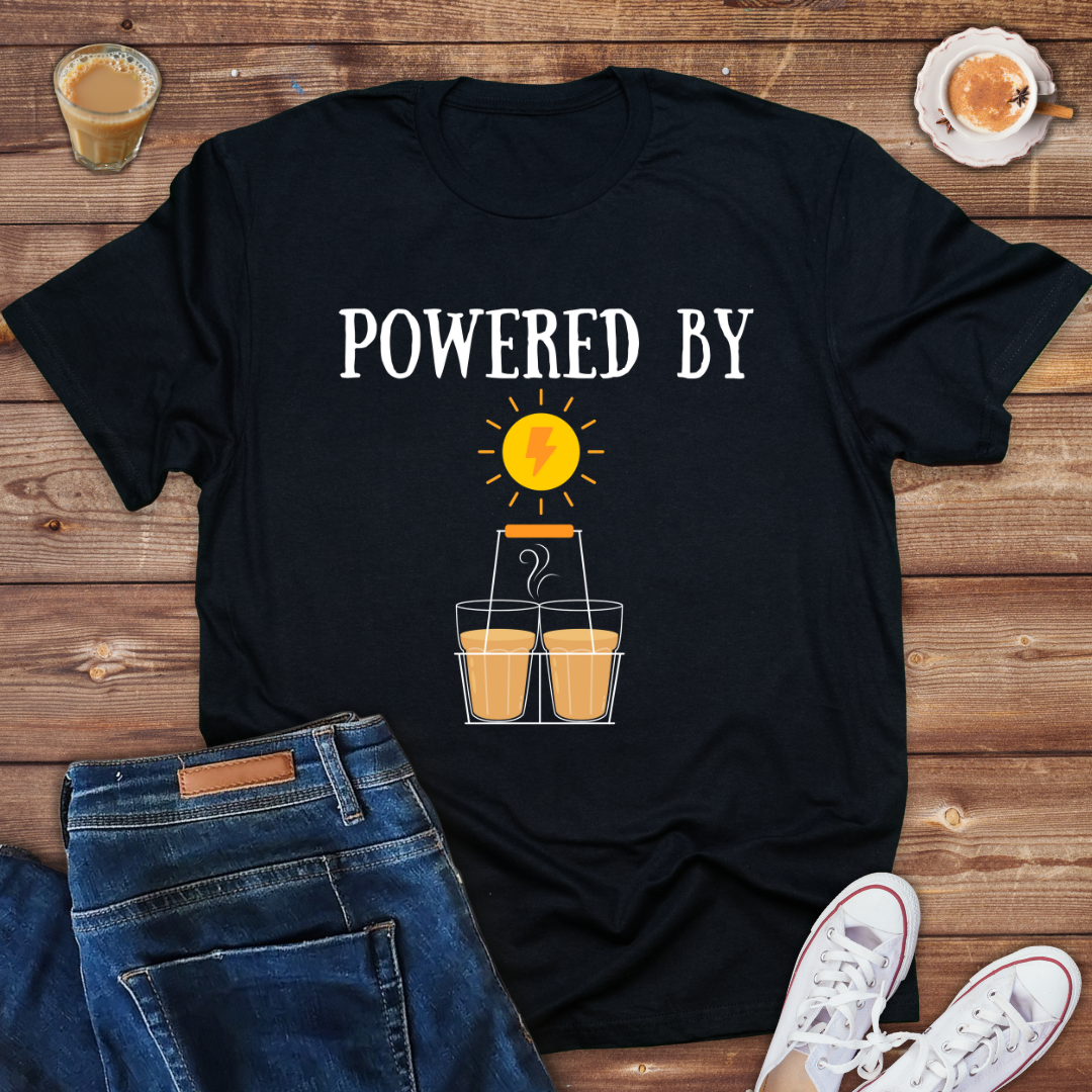 Powered by passion, fueled by chai! ☕ This fun design celebrates the ultimate energy source for every Indian—steaming hot chai! Perfect for tea lovers who run on sips and smiles. 🧡"