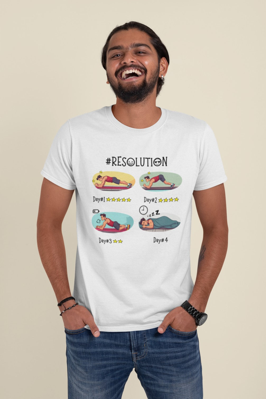 Kick off the year with a hilarious twist! This men's T-shirt is perfect for those who believe in resolutions… for about a day or two. Comfortable, quirky, and unapologetically you! 🎉