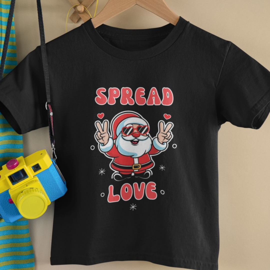 "Spread Love Santa": Adorable Santa spreading peace and love! A perfect festive T-shirt for girls to celebrate the season with style and joy. š ā¤ļøāļø